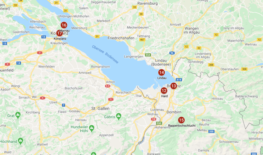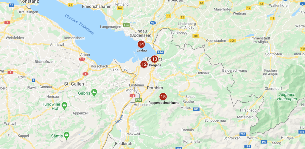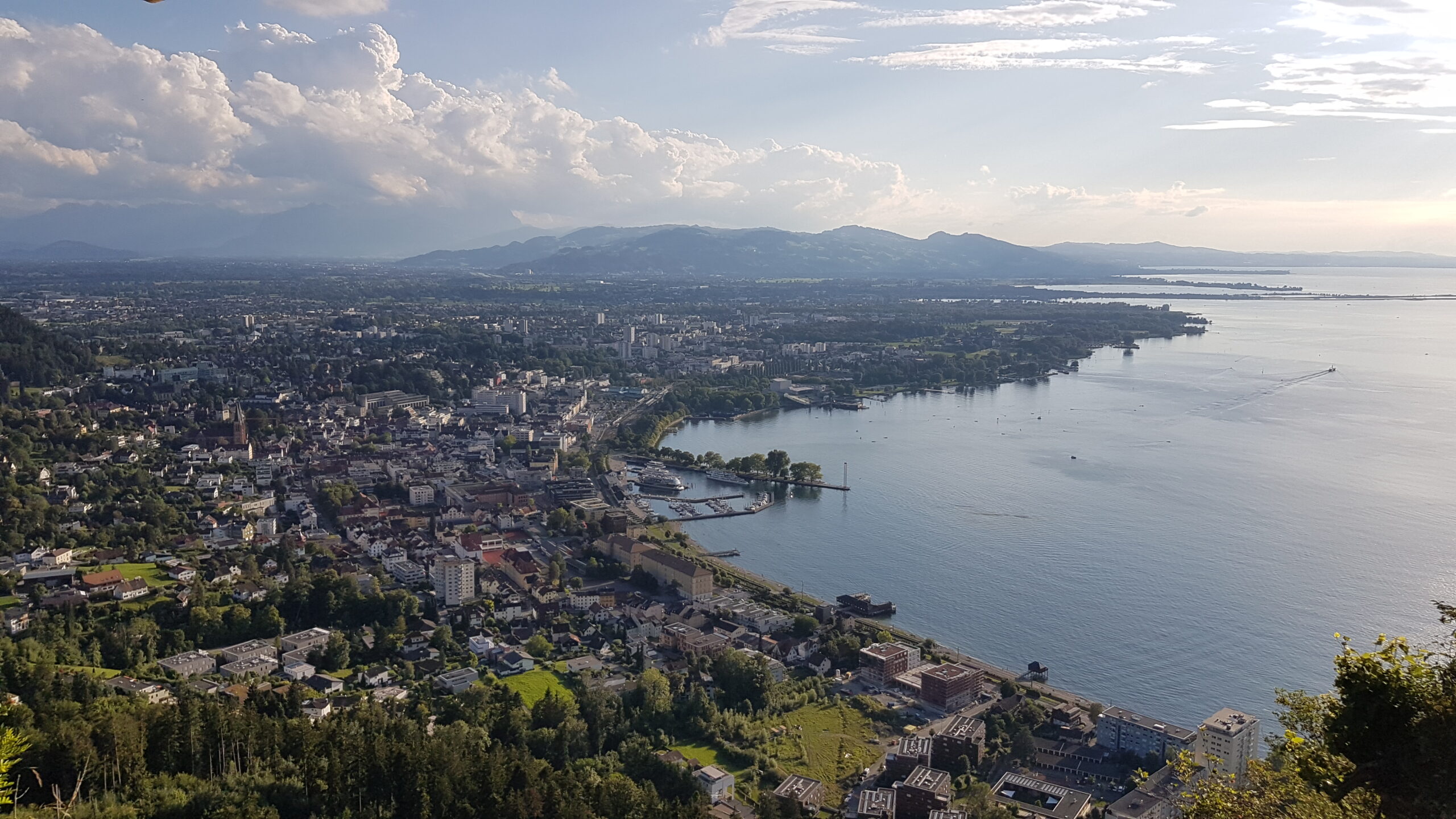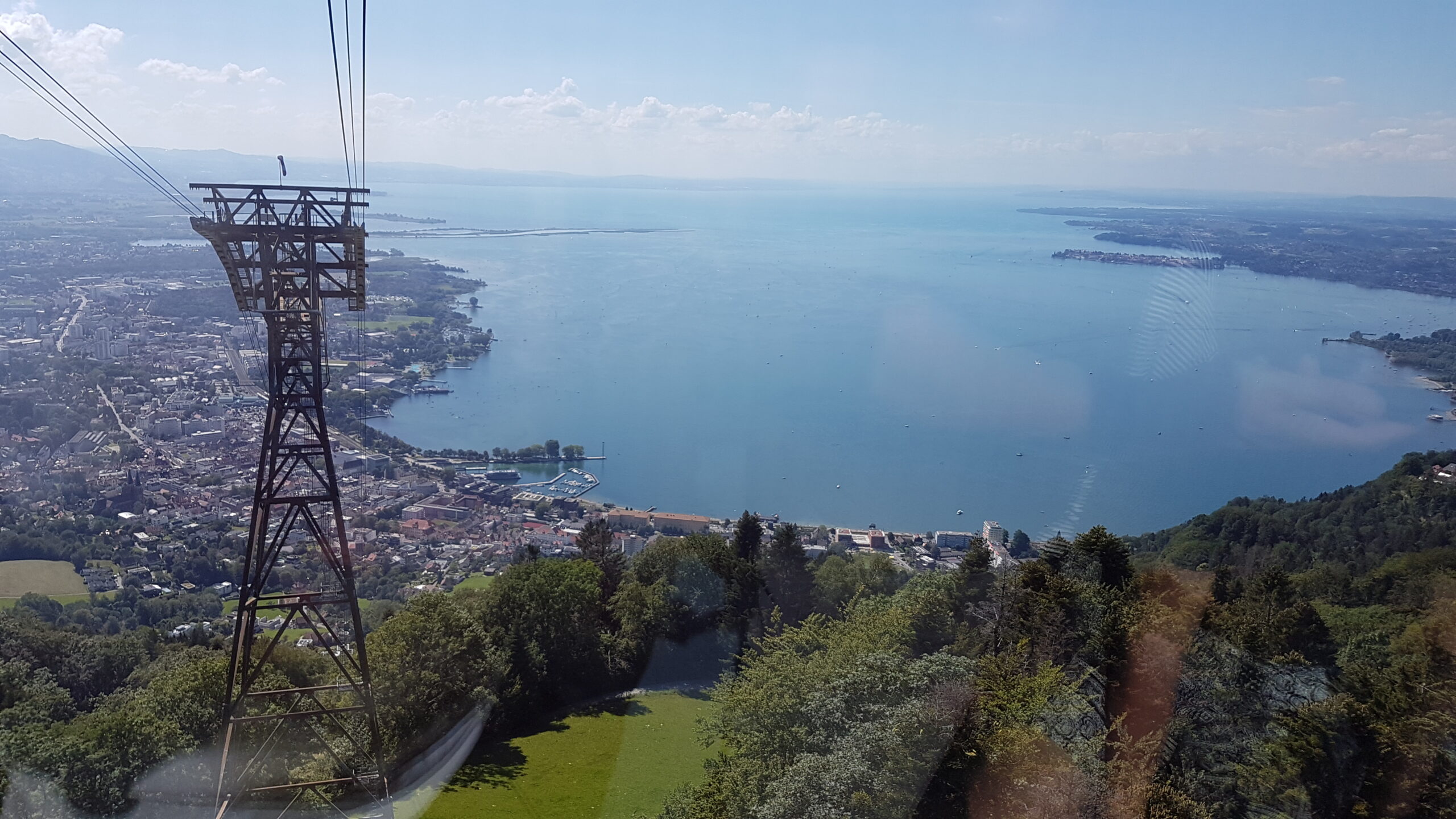 Mit 2 Rädern, die wir bei der Unterkunft bekommen hatten, fuhren wir den See entlang nach Bregenz (unschön) und Lindau (sehrschön). Sehr schöne Radstrecke direkt neben dem Bodensee. Das Wahrzeichen von Bregenz – derPfänder – besichtigten wir mit der Gondel.