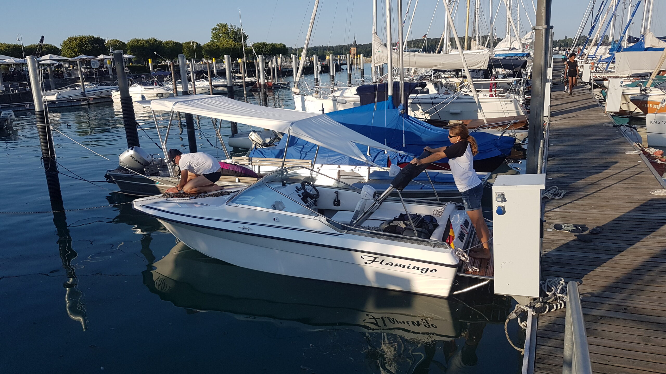 Mit einem Stop in Bludenz und Feldkirchen, ging es dann zu unserem eigentlichen Ziel am Bodensee. Die Unterkunft hat ein Freund von mir ab Montag gebucht. Da er die Ankunft aber um einen Tag verschoben hat, können wir diese bis Dienstag benutzen. Danach wissen wir noch nicht, wie es weitergeht, da hier am Bodensee alles ausgebucht ist. Der Vermieter Charly hat eine Elektrofirma und macht diese ab heute für 3 Wochen zu. Dieses Ereignis fand im Garten bei einer kleinen Grillfeier mit seinen Mitarbeitern und Freunden statt. Bei Aperol, Bier und Zirbenschnaps fanden wir bis Mitternacht gleich viele neue Freunde.