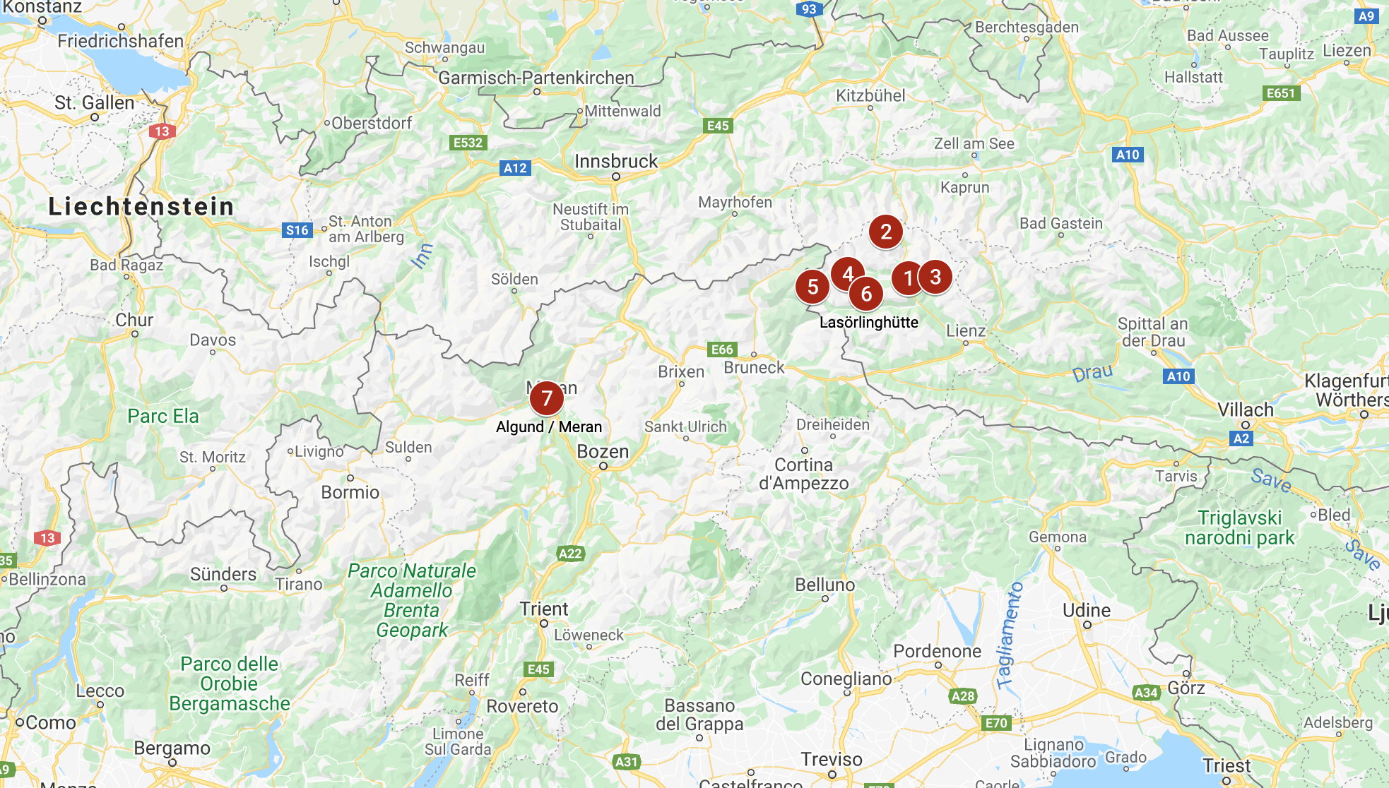 Um 08:30 ging’s bei 7,5 Grad und schönem Wetter, 1200 Meter runter nach Virgen (meiste Zeit eine Schotterstrasse). In 3:30 h waren wir zurück bei unserem Auto.