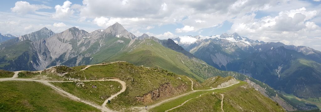 Danach ging’s mit der Bergbahn (€ 26 pP) von Kals zur Adler Lounge auf 2421 Meter. An die 60 Dreitausender säumen von allen Richtungen das unvergleichliche Panorama. Natürlich auch der Großglockner.